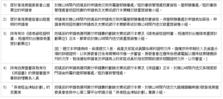 è¨å仿´¾è¡¨ä¸æ10æ¥æªæ¢ç"³è« 馿¸¯ 馿¸¯æå¯ç¶² from dams.dotdotnews.com Jun 10, 2021 · 新一期綠置居今晚7時截止申請。有市民在申請期最後一日,到觀塘的綠置居銷售辦事處遞交申請表格。 首次申請的鄧女士表示,為免家人觸景傷情. May 21, 2021 · 繼綠置居2018及綠置居2019後,房委會考慮到社會對資助出售單位持續而殷切的需求,通過將租者置其屋計劃 (租置計劃) 屋邨回收單位於每年的綠置居銷售計劃及居者有其屋銷售計劃中一併出售。約2,637個新建綠置居單位(包括約525個重售單位)及約800個租置計劃屋. May 20, 2021 · 新一期綠置居計劃5月28日接受申請,表格5月21日起派發,合資格人士可申請購買鑽石山啟鑽苑、柴灣蝶翠苑和青衣青富苑的綠置居單位,又或租者置其屋計劃下的屋邨回收單位。 第 1 頁,共22頁 「出售綠表置居計劃單位2020/21」 (包括出售租者置其屋計劃屋邨回收單位) 申請須知 申請者填寫申請表前,必須先詳閱本【申請須知】,以便了解申請資格及申請細節。 May 21, 2021 · 房委會今次亦推售不少面積較細的租置單位,其中最細是大埔太和邨一個121呎單位,售價為17.1萬元,其次細的單位位於黃大仙鳳德邨,約為126呎,售價約20.4萬。 早上到觀塘綠置居售樓處領取表格的市民不算太多,大部分均心儀啟鑽苑,認為地理位置較好。 May 20, 2021 · 「綠置居2020/21」的申請表及申請須知、啟鑽苑的售樓資料簡介,和未售出或因買賣協議撤銷而收回的其他「綠置居」單位,及「租置計劃」回收單位的售樓簡介單張,將於明日(五月二十一日)開始供公眾索取,當中載有銷售安排和發展項目及屋邨的基本資料。 May 22, 2021 · 【明報專訊】新一期綠置居昨日起派發申請表,下周五(28日)接受綠表人士申請,6月10日晚上7時截止。今期除推售鑽石山啟鑽苑、柴灣蝶翠苑及青衣青富苑共逾2600個單位,亦首次推售約800伙租者置其屋計劃回收單位,售價多不逾100萬元,最低只需約7200元首期便可「上車」。 Mar 15, 2021 · 【綠置居2021/鑽石山啟鑽苑/房委會/綠表置居計劃/申請資格/價錢/圖則平面圖】房委會資助房屋小組委員會今日(15日)開會,通過推售鑽石山綠置居項目「啟鑽苑」,按評定市值折減50%後,售價由約118萬元至約385萬元不等,預計今年5月接受申請。